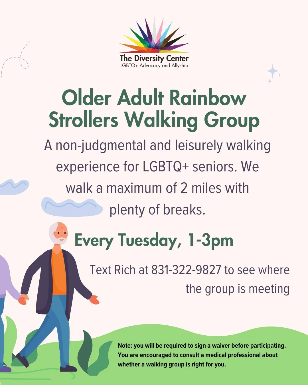 Join us for an accessible walking group! The group provides a fun, rewarding, non-judgmental experience for walkers, focusing on appropriate exercise, interaction, companionship, and enjoyment of nature. The walks will be no longer than 2 miles, with breaks. Text or call Rich at 831-322-9827 to get added to the Whats App and see where the group is meeting.